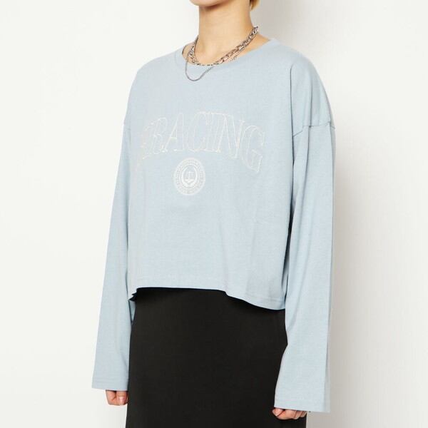 刺しゅうカレッジ短丈ロンT「2022新作」 / ファッション レディースアパレル トップス Tシャツ・カットソー