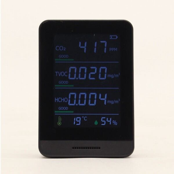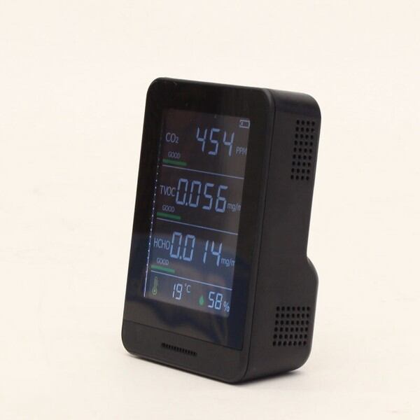 【5つのデータを同時測定】●二酸化炭素●全揮発性有機化合物●ホルムアルデビド●温度●湿度をリアルタイムで表示可能!●換気アラートで換気のタイミングをお知らせ!