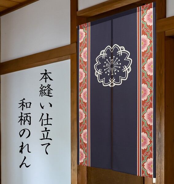 周囲とスリット部分が丁寧に縫製された「本縫い仕立てのれん」です