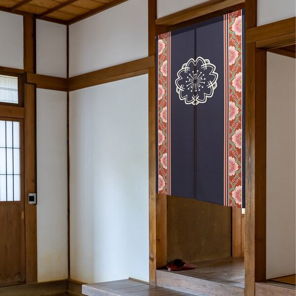 のれん 目隠し 85x150cm「桜紋」トロマット 和柄/和風 / 家具・インテリア ファブリック・敷物