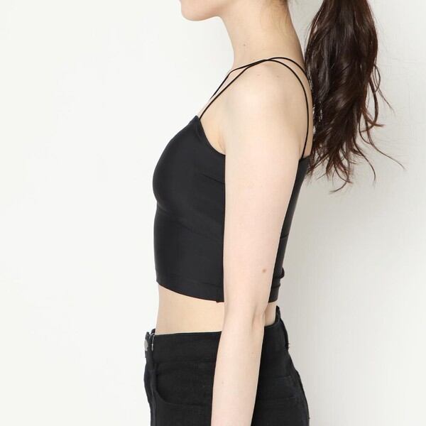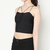 これからの季節暑くなる時期に持って来いのひんやり冷感アイテム◎クロスストラップなので肩落ちしにくい♪ズボラコーデになりがちな近所やおうちでの使用にオススメです☆サイズ:F本体:着丈22cmバスト57cm裾幅28.5cm