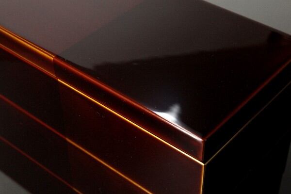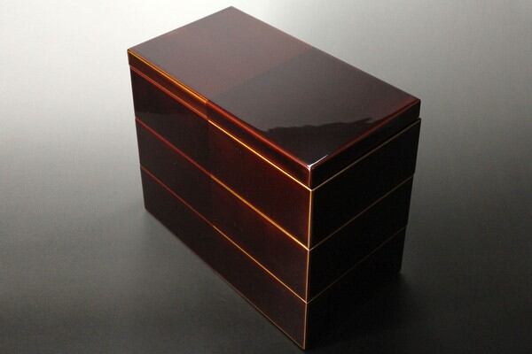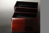 日本の伝統的な柄である市松を白檀塗りで仕上げた、モダンな重箱。木製なので軽い持ち心地で使いやすい商品です。