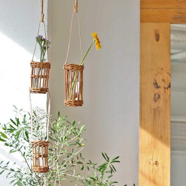 アラログバスケットの中にガラスベースが入っているので、生花も飾ることが出来ます