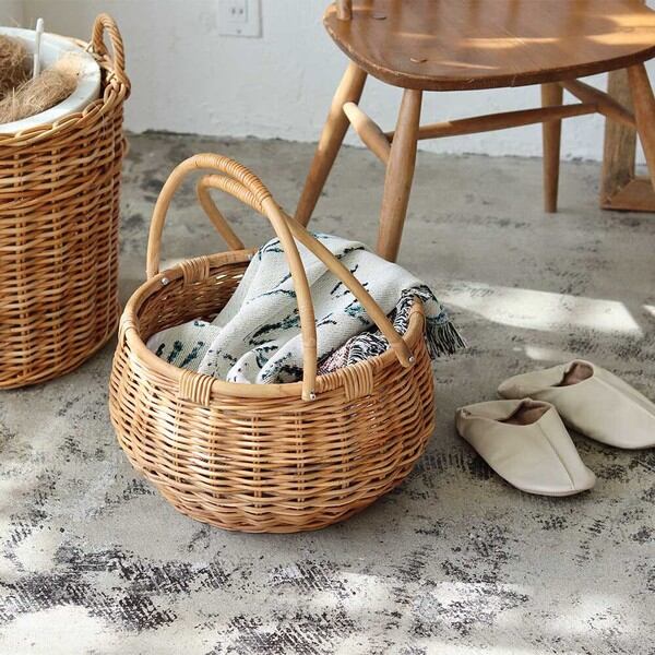 ピクニックにこれ一つでお出かけ出来そうです♪その他ラタンアイテムと合わせると統一感も出て◎丈夫なラタン素材は経年変化を楽しみながら長くご愛用頂けます