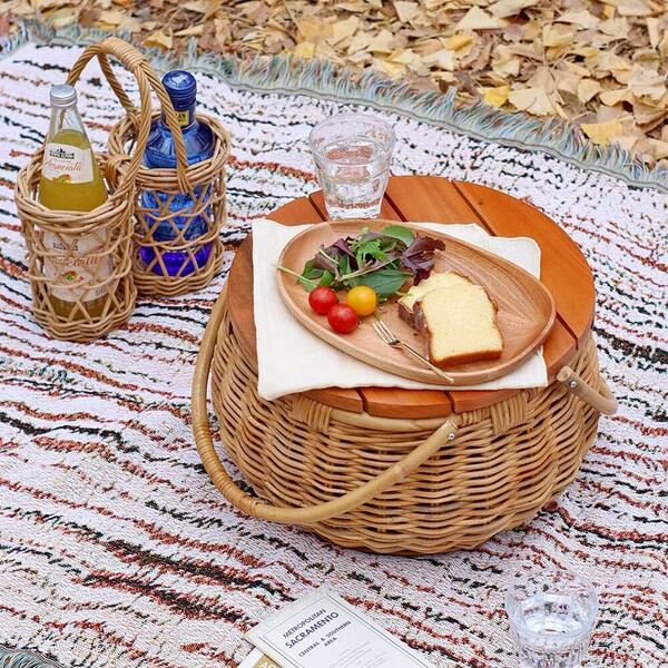 ピクニックなどで使うと雰囲気も出て気分も上がります◎お菓子やボトル、お皿などたっぷり収納が可能