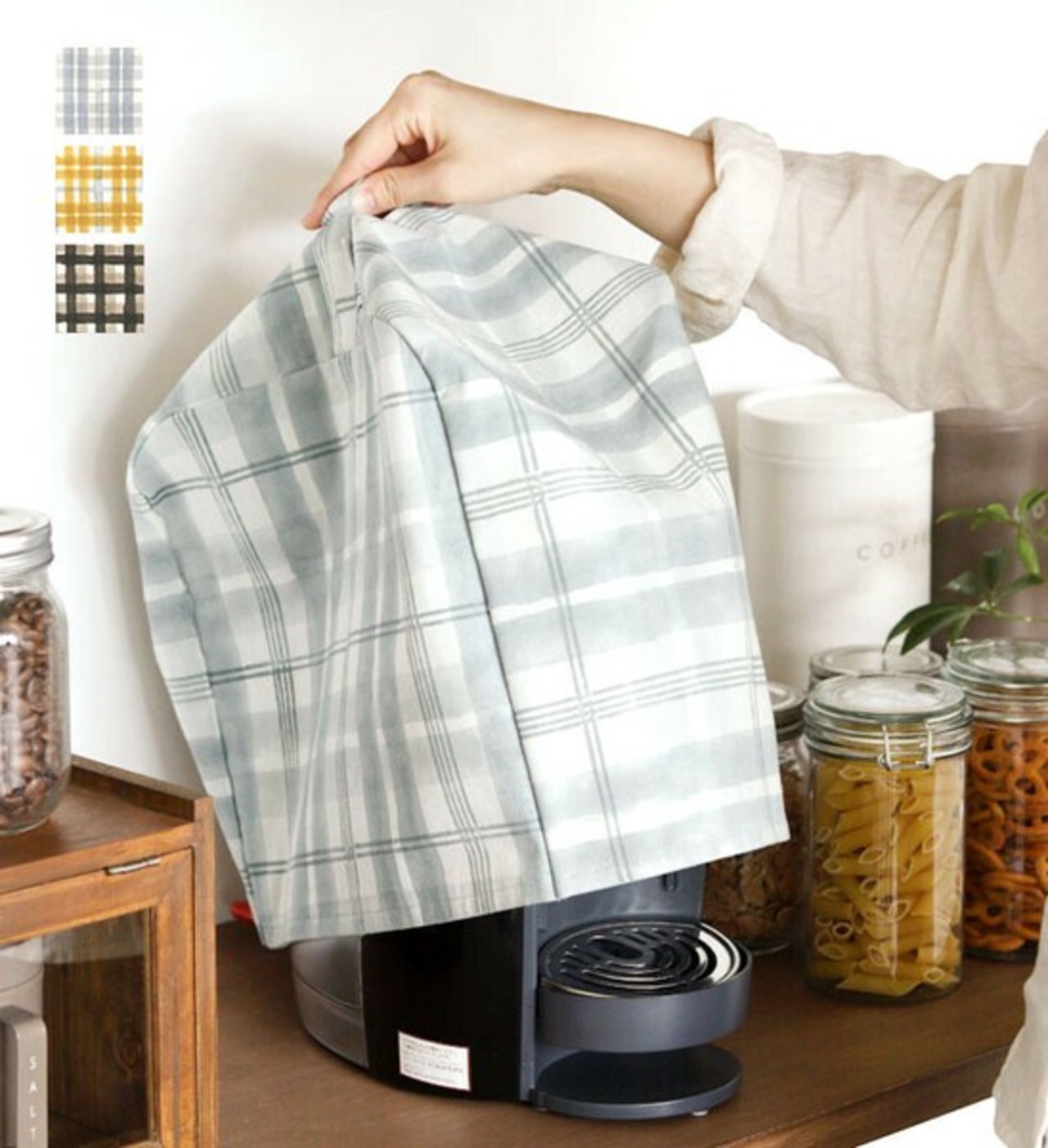 小さめのコーヒーメーカーの場合裾を折込んでお使い頂けます