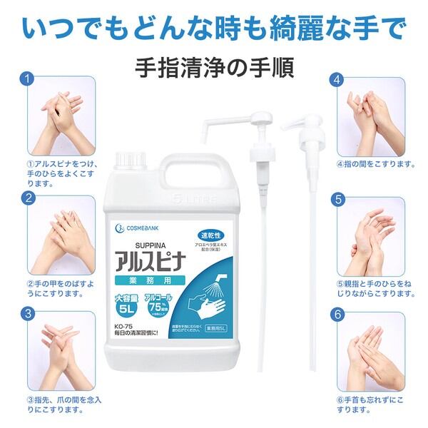 業務用アルコール75%配合アルスピナ5L / 生活雑貨 日用品 衛生用品 除湿・除菌・消臭グッズ