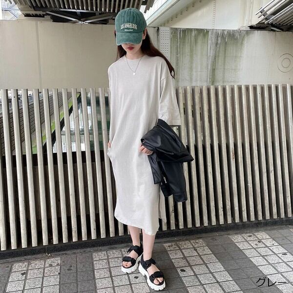 ワンピース オールインワン ヘムカット ラウンド 半袖 夏 春 2211008