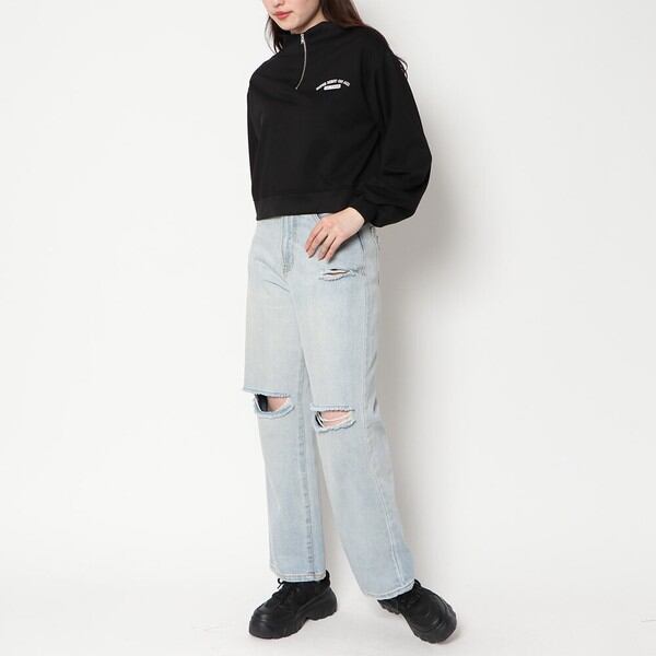ハーフジップが今時感♪胸元のワンポイントデザインが可愛い◎ジョガーパンツとスポーティーに!タック入りパンツとスタイリッシュに☆