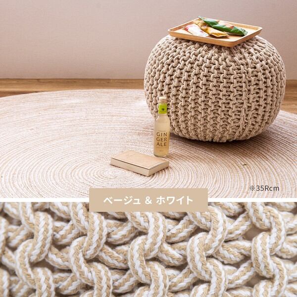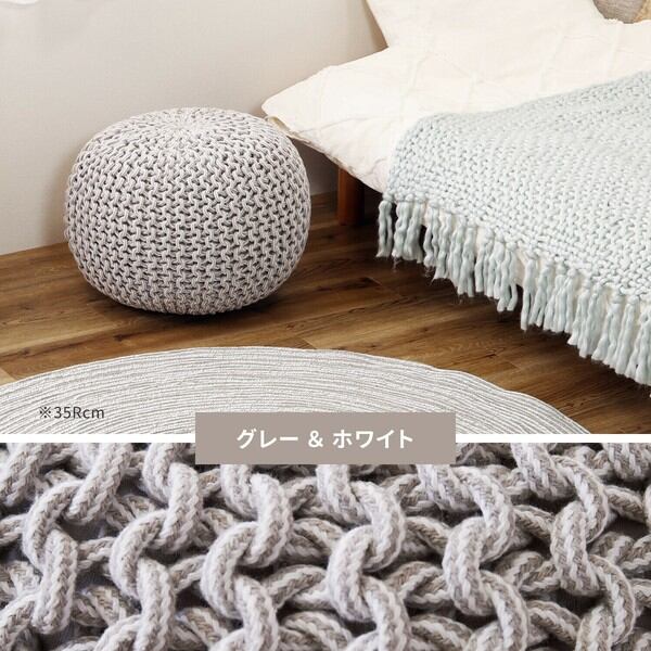 2022新色 プフ スツール クッション 円形 編み上げ SNS映え 「ブレイド」 グリーン/ホワイト / 家具・インテリア チェア