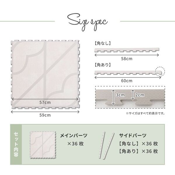 ジョイントマット プレイマット 水洗いOK 大判 「キュロス」 ピンク約60×60cm4個セット36枚組 / 家具・インテリア ファブリック・敷物