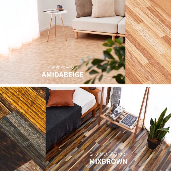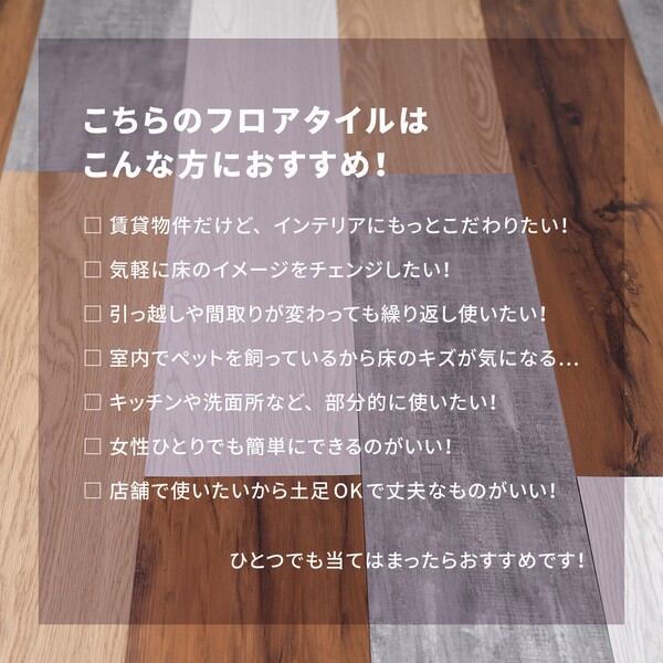 72枚入 ウッド調フロアタイル 置くだけ 貼ってはがせる 吸着 約6帖用 約91.4×15.2cm / 家具・インテリア ファブリック・敷物