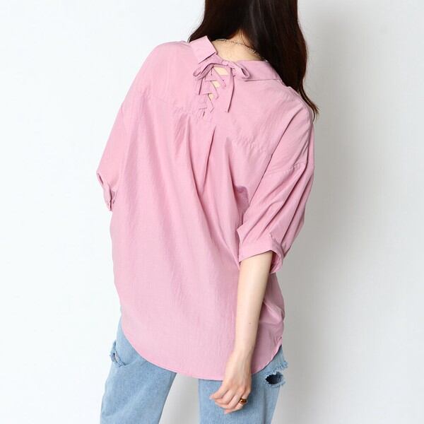 5分バックレースアップシャツ / ファッション レディースアパレル トップス シャツ・ブラウス