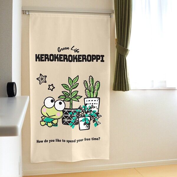 のれん 受注生産 目隠し サンリオ「けろけろけろっぴ サボテン」85×丈150cm 日本製 / 家具・インテリア ファブリック・敷物