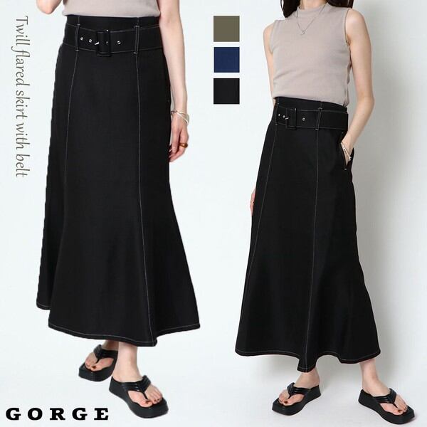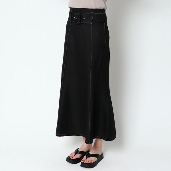 ベルト付きツイルフレアスカート / ファッション レディースアパレル ボトムス
