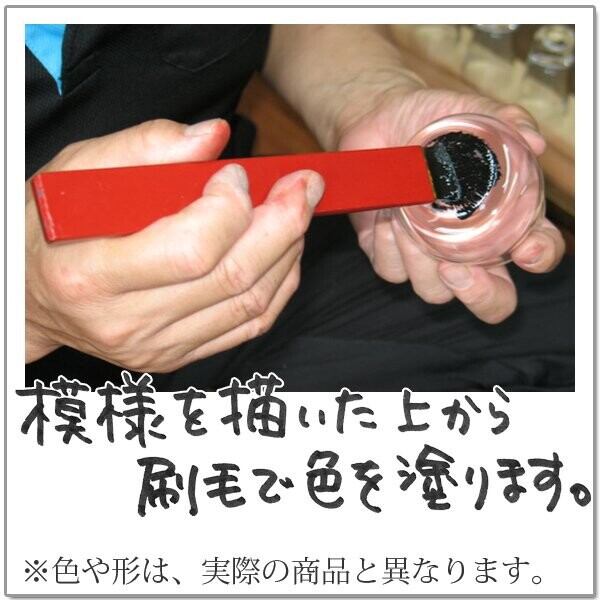 透明なガラスの底に漆で絵を描き 独特な味わいを生み出しています。