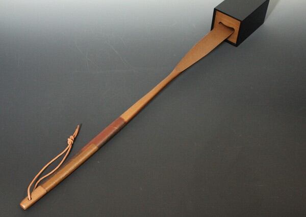 天然木を加工して作った靴ベラです。持ち手部分には日展作家 森田清照氏が越前和紙を漆で貼り 加飾しています。玄関の赴きあるインテリア。専用の木製スタンド付。