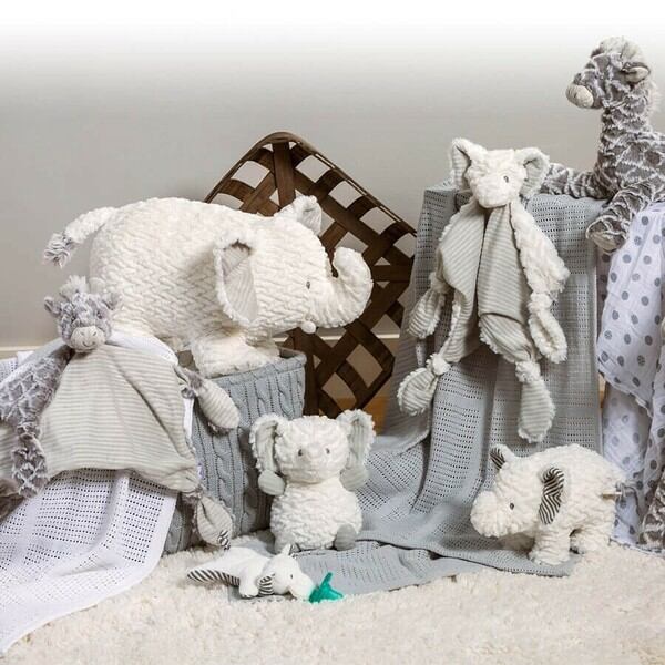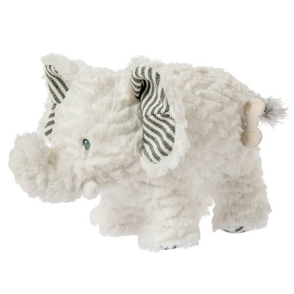 ストライプ模様が特徴的なゾウのぬいぐるみオルゴールです