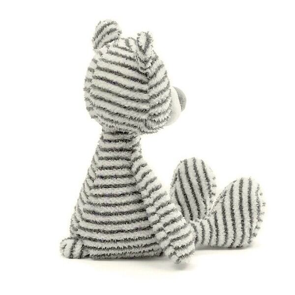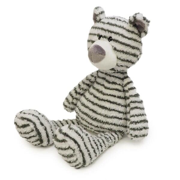 グレーとホワイトの縞模様と長い腕と足が特徴のテディベアです