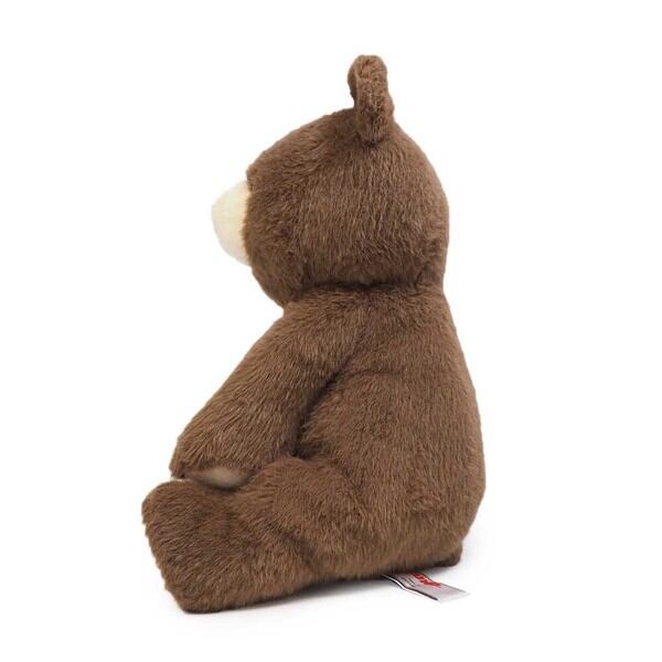 ダークブラウンの体とは対照的なベージュの口元と足パッドが特徴でふわふわでとても柔らかい素材のテディベアです