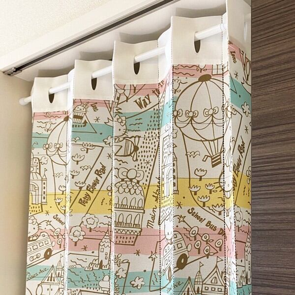 受注生産アコーディオンカーテン サンリオ「ハローキティ 秘密の地図」96x200cm 日本製 パタパタ / 家具・インテリア ファブリック・敷物 のれん