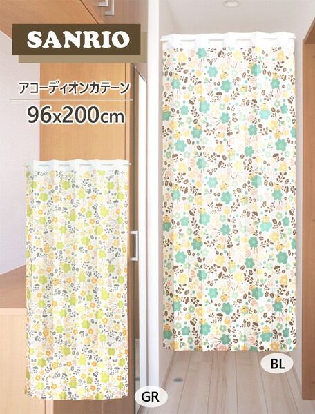 受注生産アコーディオンカーテン サンリオ「ポムポムプリン 北欧花柄」96x200cm 日本製 パタパタ / 家具・インテリア ファブリック・敷物 のれん