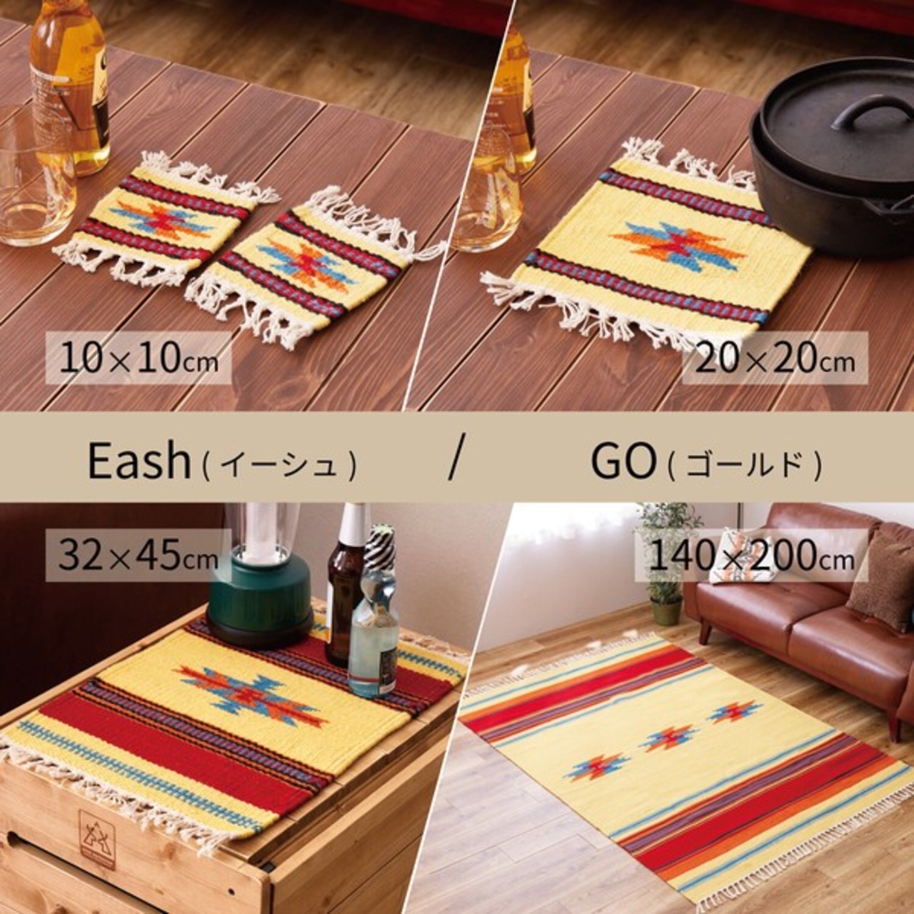キャンプで映える 手織りウールのキリム コースター 約10×10cm 2枚組 「イーシュ」 ゴールド / 生活雑貨 食器・キッチン キッチン雑貨