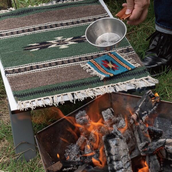 難燃性に優れたウール素材は、キャンプなどの火を扱うシーンでも安心して使えるため、