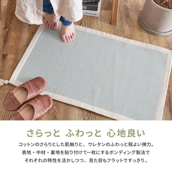 洗濯機で洗える 玄関マット 屋内 綿100% 滑り止め付き 「アルト」 グリーン 約50×80cm / 家具・インテリア ファブリック・敷物 ラグ・マット