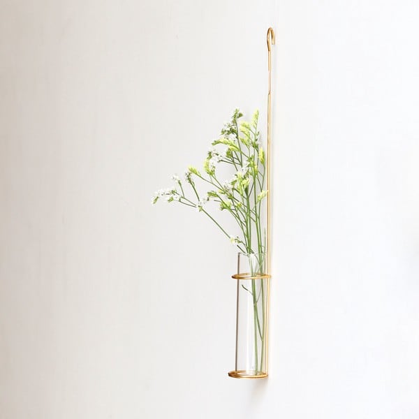 生花も飾れるゴールド仕上げのハンギングフラワーべース