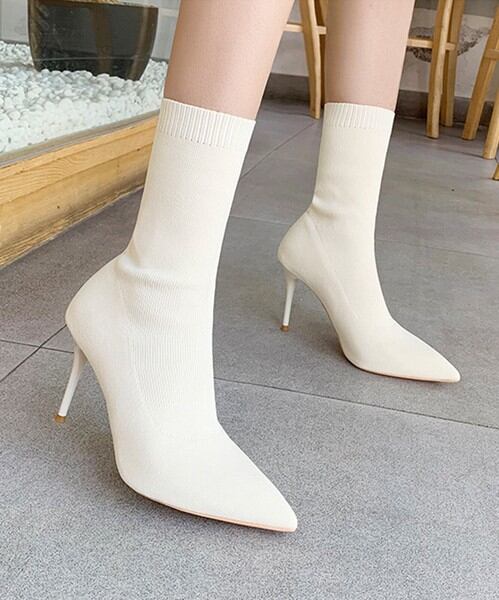 綺麗なラインのストレッチソックスブーツヒール9cm / ファッション 靴 ショート
