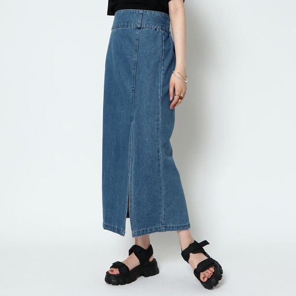 大人カジュアルで着回ししやすいスカートが登場★キレイなシルエットとスリットで、デニムでもカジュアルになりすぎないのが嬉しい◎Tシャツと合わせるのはもちろん、ブラウスと合わせてレディライクに着るのもとても可愛くておすすめ☆