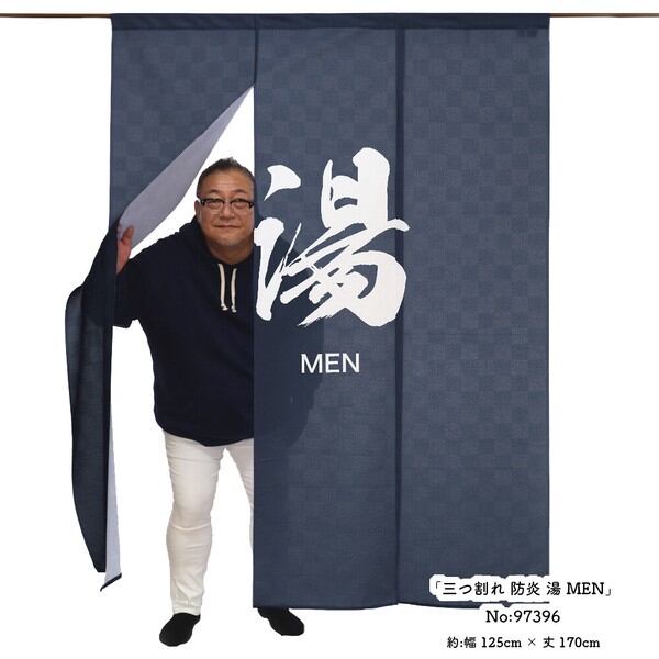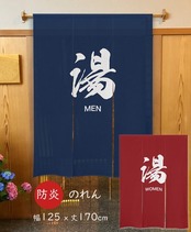 のれん 受注生産 目隠し 「三つ割れ 防炎 湯 MEN/WOMEN」125x170cm 日本製 和柄 和風 店舗 施設 向け / 家具・インテリア ファブリック・敷物