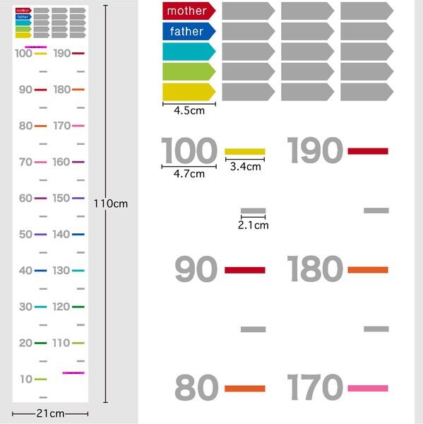 シートサイズ:100×21cmのシールタイプ身長計ウォールステッカーです