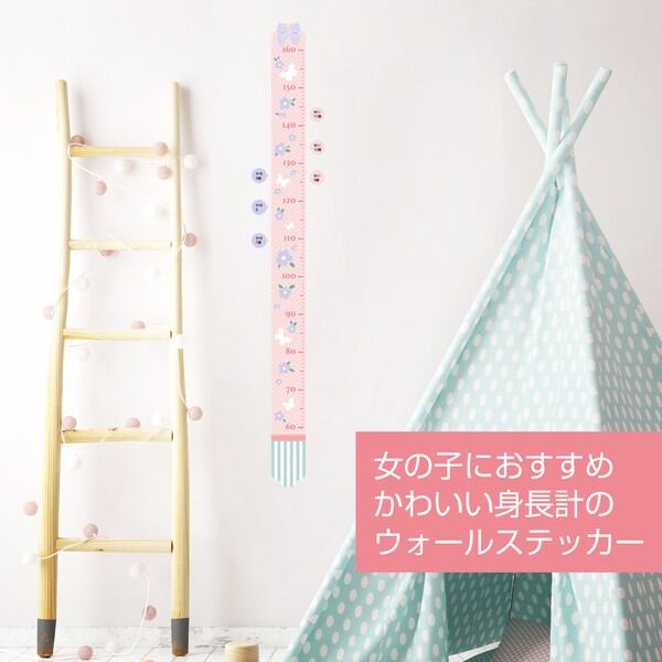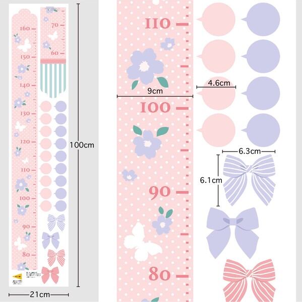 ウォールステッカー 壁紙 シール はがせる デコレーション 身長計・ 「 女の子身長計/リボン」ステッカー/シール/日本製 / 家具・インテリア インテリア雑貨 壁面装飾