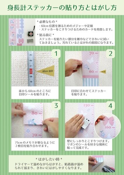リボンのシールを身長計の好きな場所に自由に貼って頂けます