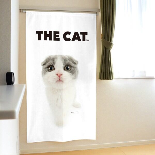 のれん 受注生産 目隠し THE_CAT スコティッシュフォールド ブルー&ホワイト 85×150cm 日本製 THE_DOG / 家具・インテリア ファブリック・敷物