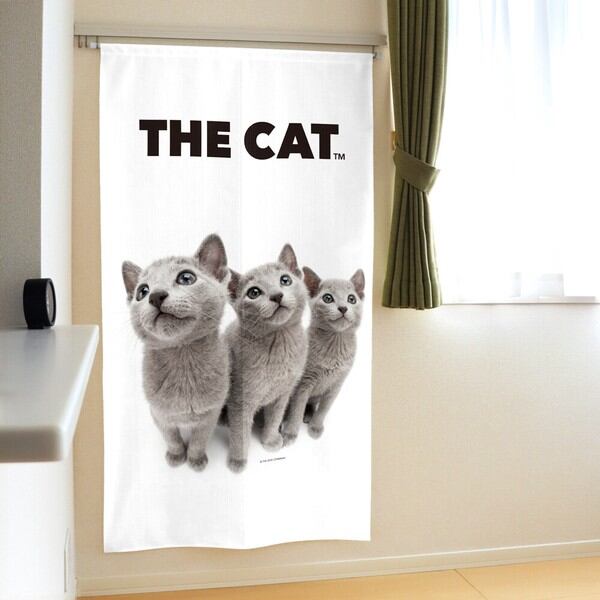 のれん 受注生産 目隠し THE_CAT ロシアンブルー3匹 幅85×丈150cm 日本製 THE_DOG / 家具・インテリア ファブリック・敷物