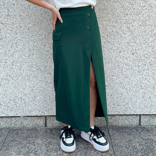 フロントの大胆なスリットかっこいいスカートが登場★インパンツ好きで安心して着れます◎【2232558:ツイルテーラージャケット】と合わせてセットアップでの着用がオススメ!