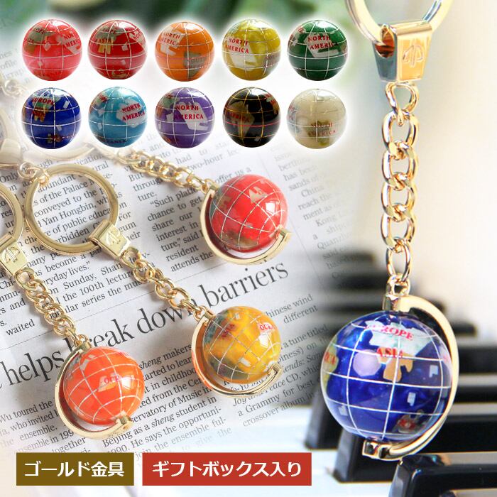 ピィアース オブジェ 置物 天然石地球儀キーホルダー(ゴールド金具/箱入り) / インテリア 車 雑貨 風水