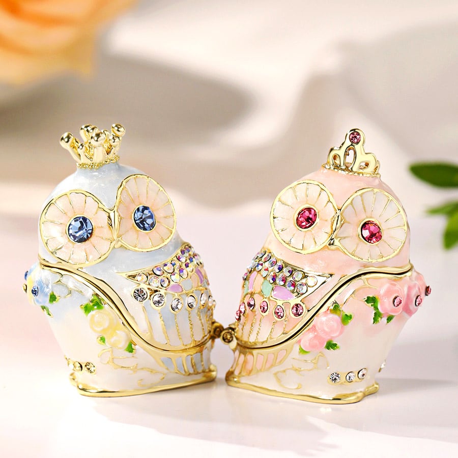 ピィアース ジュエリーボックス アクセサリー ケース 収納 ローズクラウンフクロウ(ブルー) / 花・フルーツ ピアス ネックレス 指輪 宝石箱 インテリア 雑貨 おしゃれ