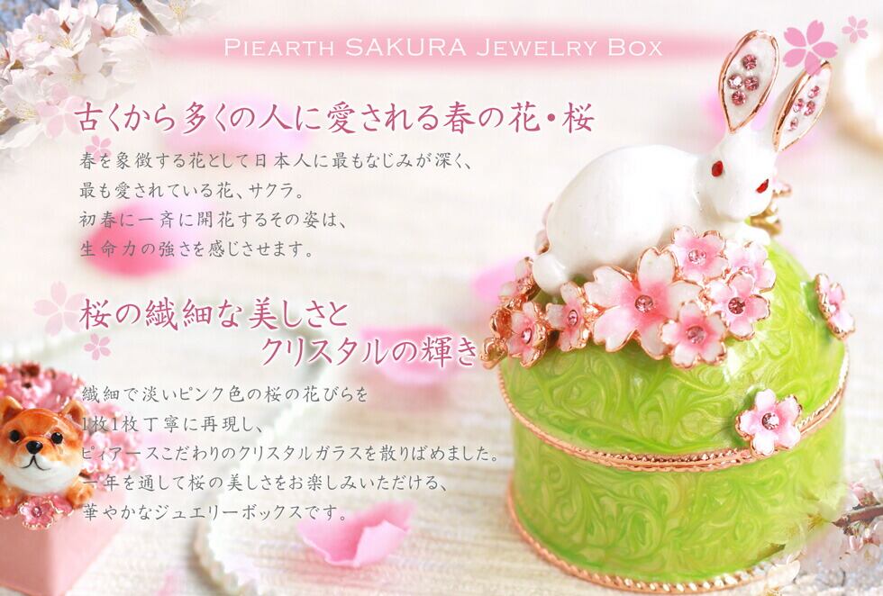ピィアース ジュエリーボックス アクセサリー ケース 収納 うさぎと桜B / ピアス ネックレス 指輪 宝石箱 インテリア 雑貨 おしゃれ