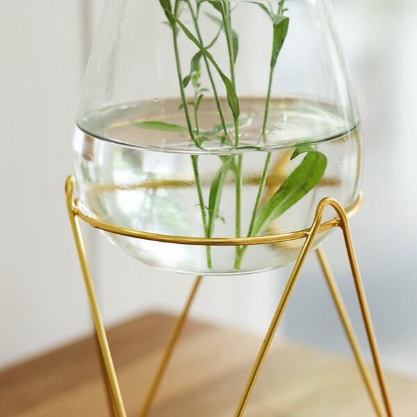 ゴールド仕上げのアイアンのスタンドが ガラスベースをしっかりと支えてくれます