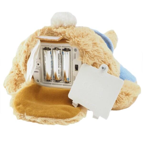 ぬいぐるみの左足のボタンを押すと、耳が動いてしゃべります