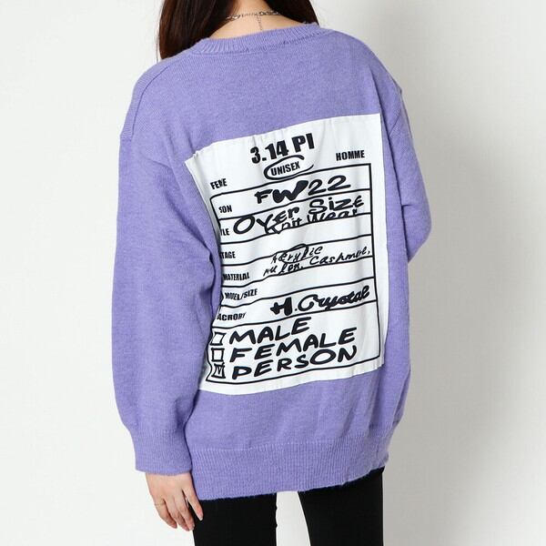 背中にお洒落なシートが張り付けられた貼り付けシートニットプルオーバーが登場★カラーがくっきりとした印象的なバックデザインがポイント♪ニット素材なので暖かくフワッと柔らかいです◎メンズライクでパンツスタイルがピッタリ☆