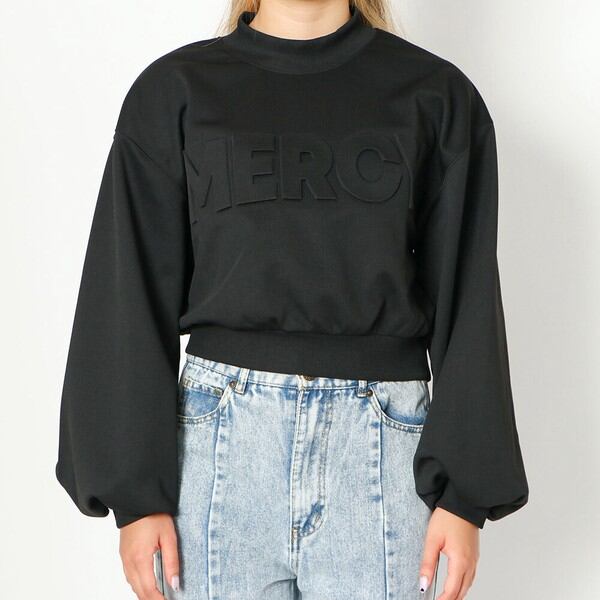 スッキリとした首ラインが作れるプチハイエンボス短丈プルオーバーが登場★大きなエンボス加工が影を作って立体的なデザインを見せる♪ショート丈で胴短効果◎シンプルなアイテムなのでコーデに取り入れやすいのもメリットです☆