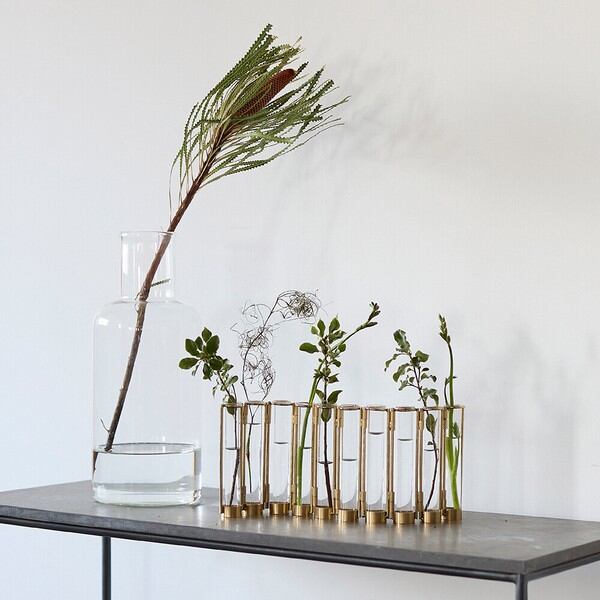 お家の中に気軽にシンボルツリーをというテーマで作ったこの大きなフラワーベースは、植木を置くには場所や手間がかかるけど…と躊躇う方へ大きめの枝ものを活けてもらいやすいようにデザインしました