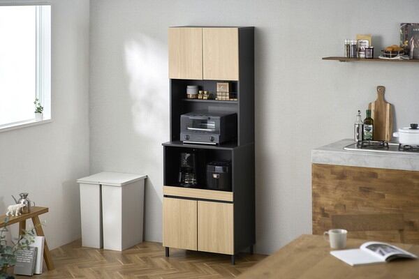 ●「住環境に合わせた商品サイズの適正化」×「機能(伸長・収納)×「質感・デザイン」にこだわった家具シリーズライフスタイルに合わせてお好みのボードが選べる、キッチンキャビネットです