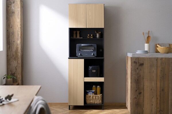 ●「住環境に合わせた商品サイズの適正化」×「機能(伸長・収納)×「質感・デザイン」にこだわった家具シリーズライフスタイルに合わせてお好みのボードが選べる、キッチンキャビネットです