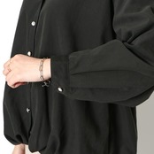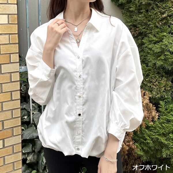 フロントに並んだビジュライクなボタンが目を惹くバックレースアップブラウスが登場★ふっくらとした袖が女性らしさを演出